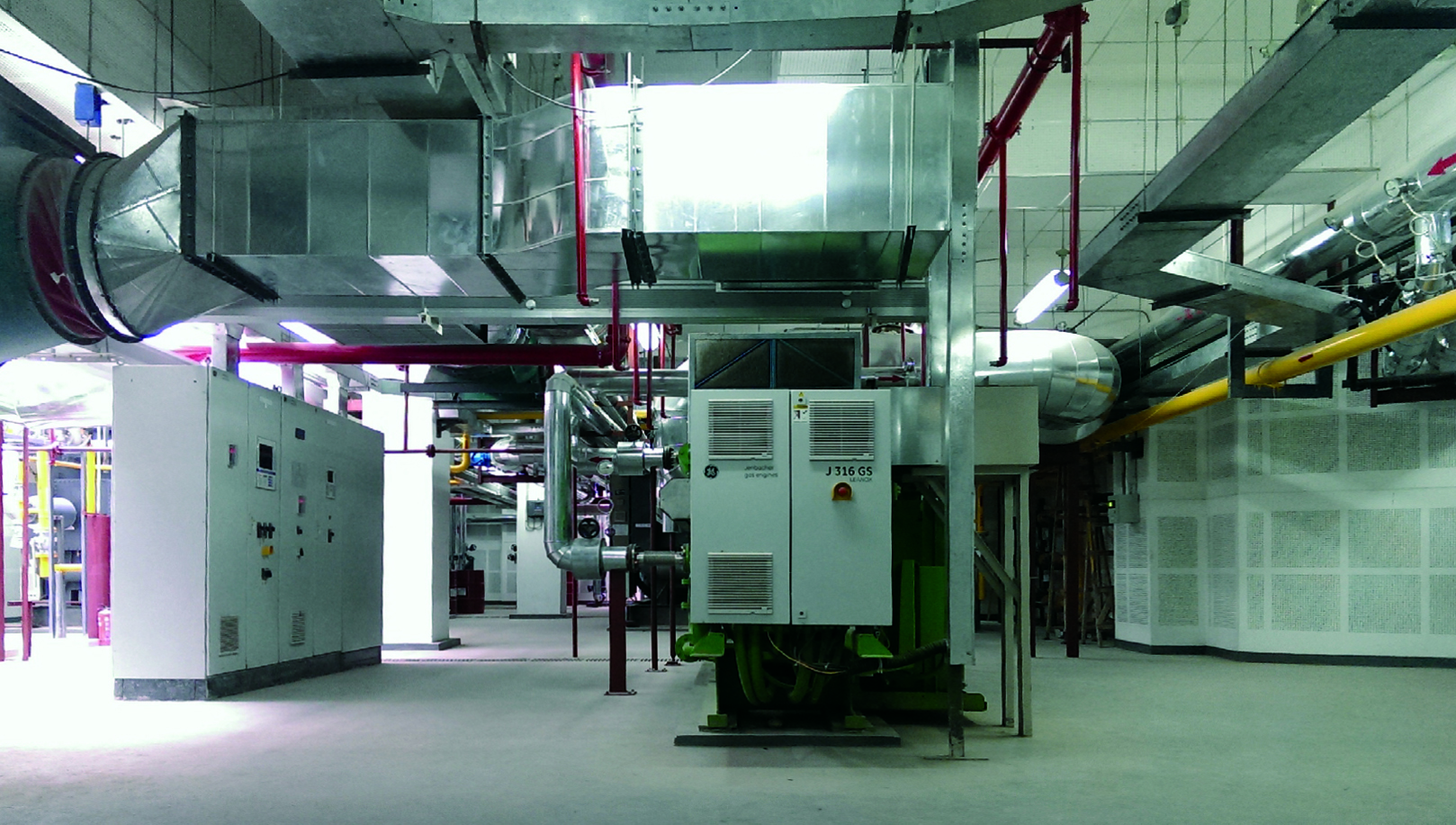 2x834kW發(fā)電機(jī),2x1454kW煙氣熱水直燃機(jī),2x2.91MW燃?xì)庹婵斟仩t,3x1257kW電制冷機(jī)組